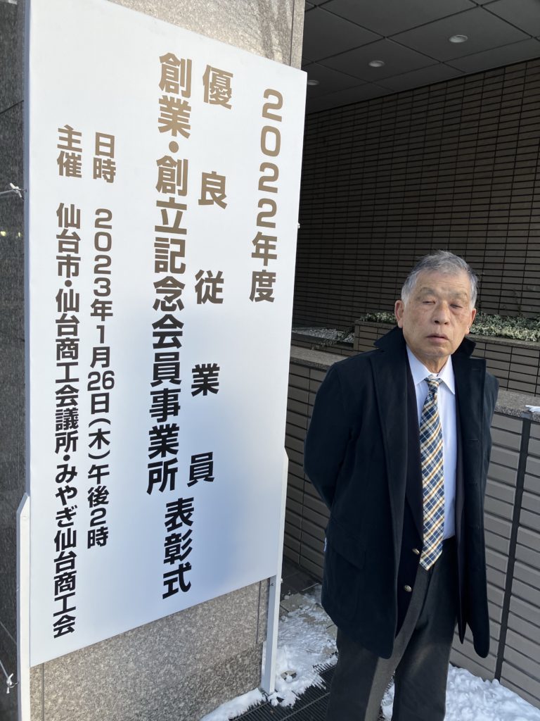 仙台商工会議所主催の2022年度創業・創立記念表彰式に選出され先日式典に出席してきました。