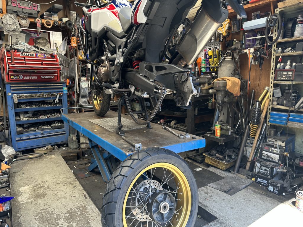 アフリカツイン1000DCT前後タイヤ交換です。